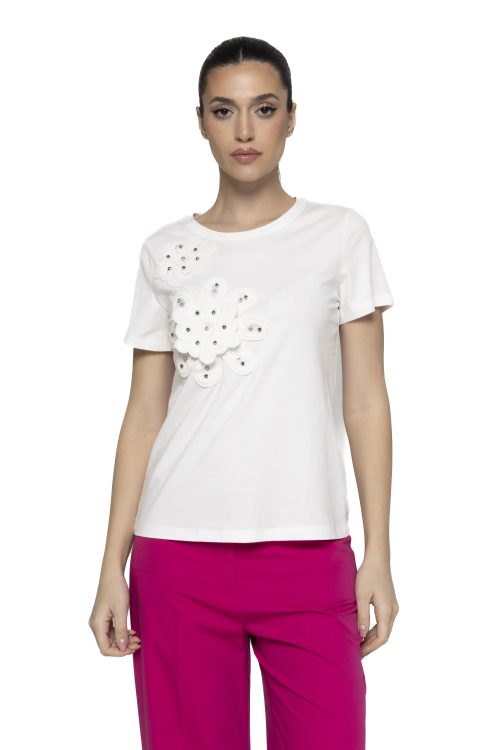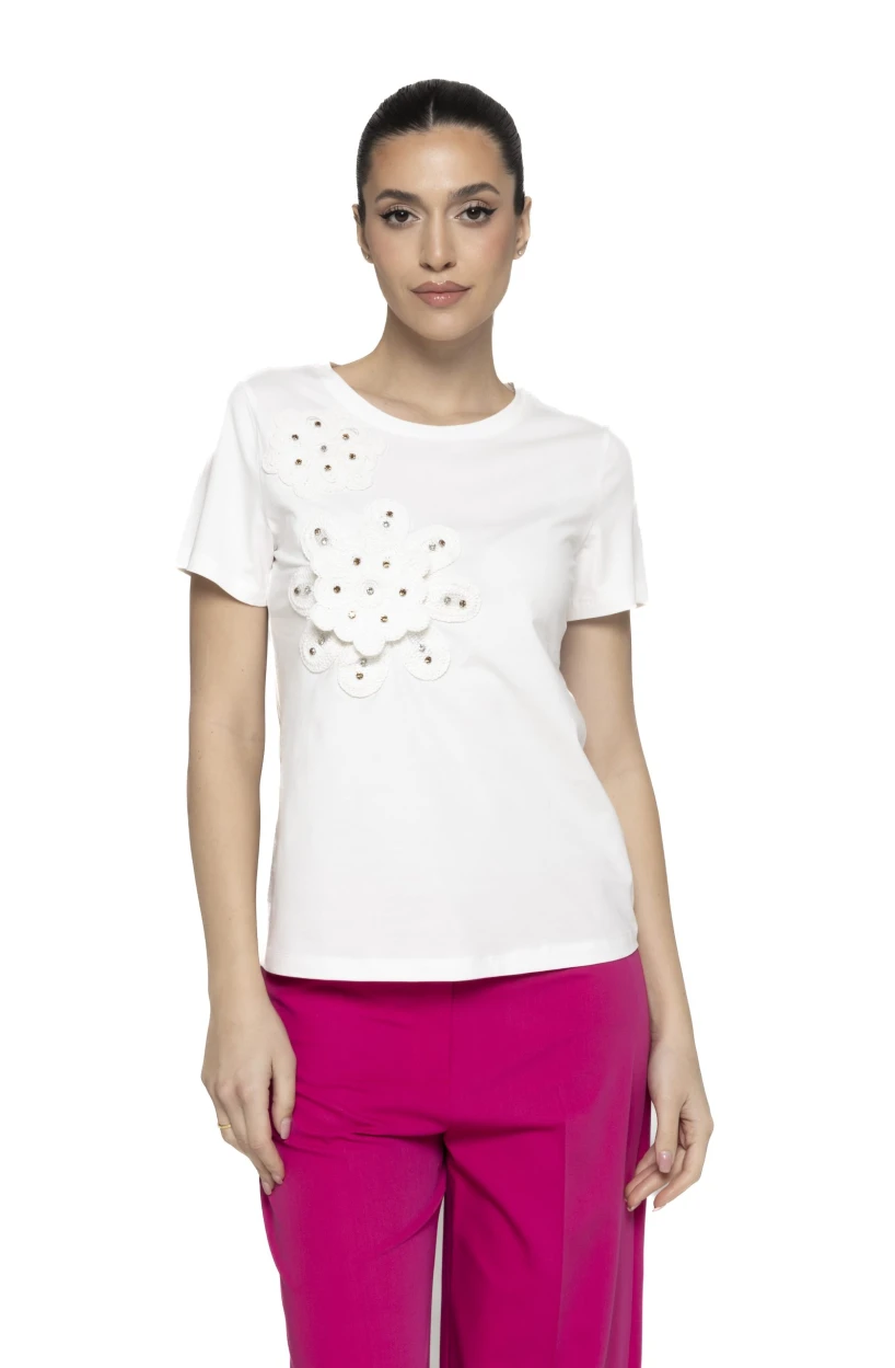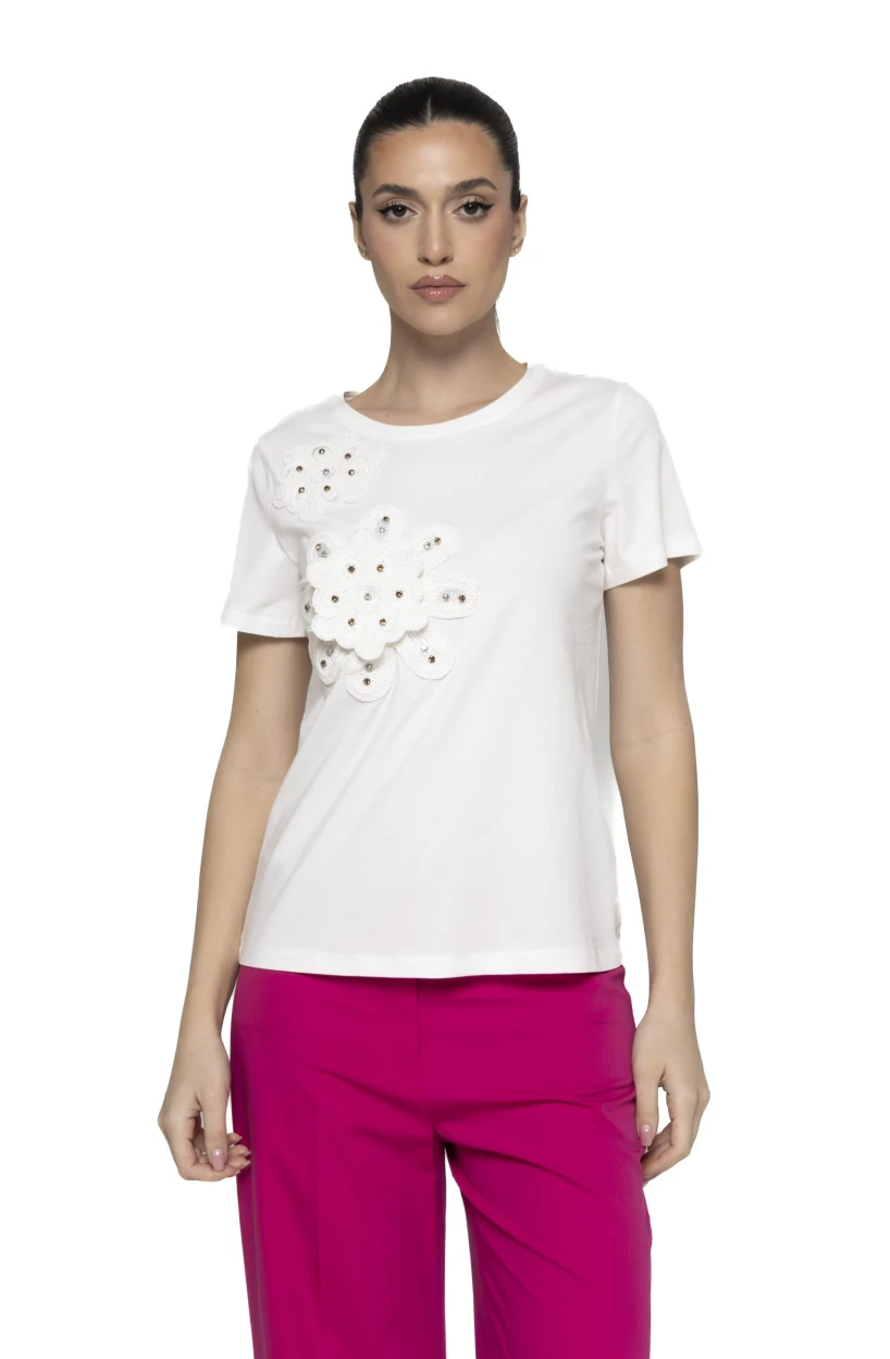 Tricoul cu aplicații flori Aissa este alegerea perfectă pentru femeia care își dorește să adauge un plus de prospețime și feminitate ținutelor sale de zi cu zi. Cu un design modern și detalii delicate, acest tricou reușește să transforme o piesă basic într-un element statement, ideal pentru outfituri casual, dar cu personalitate.