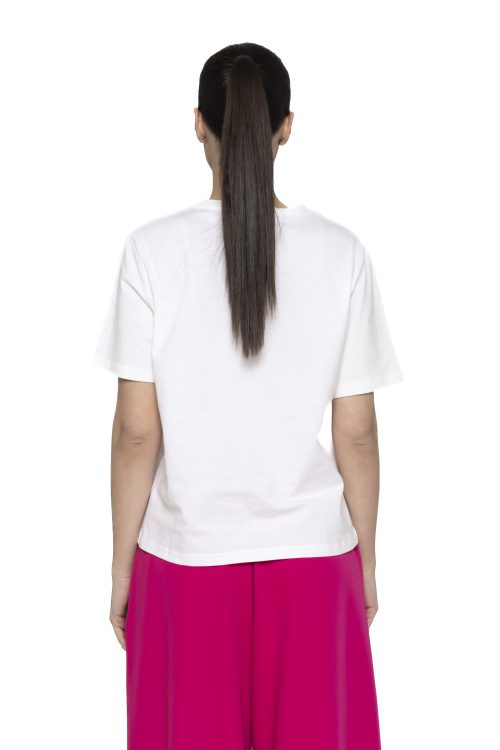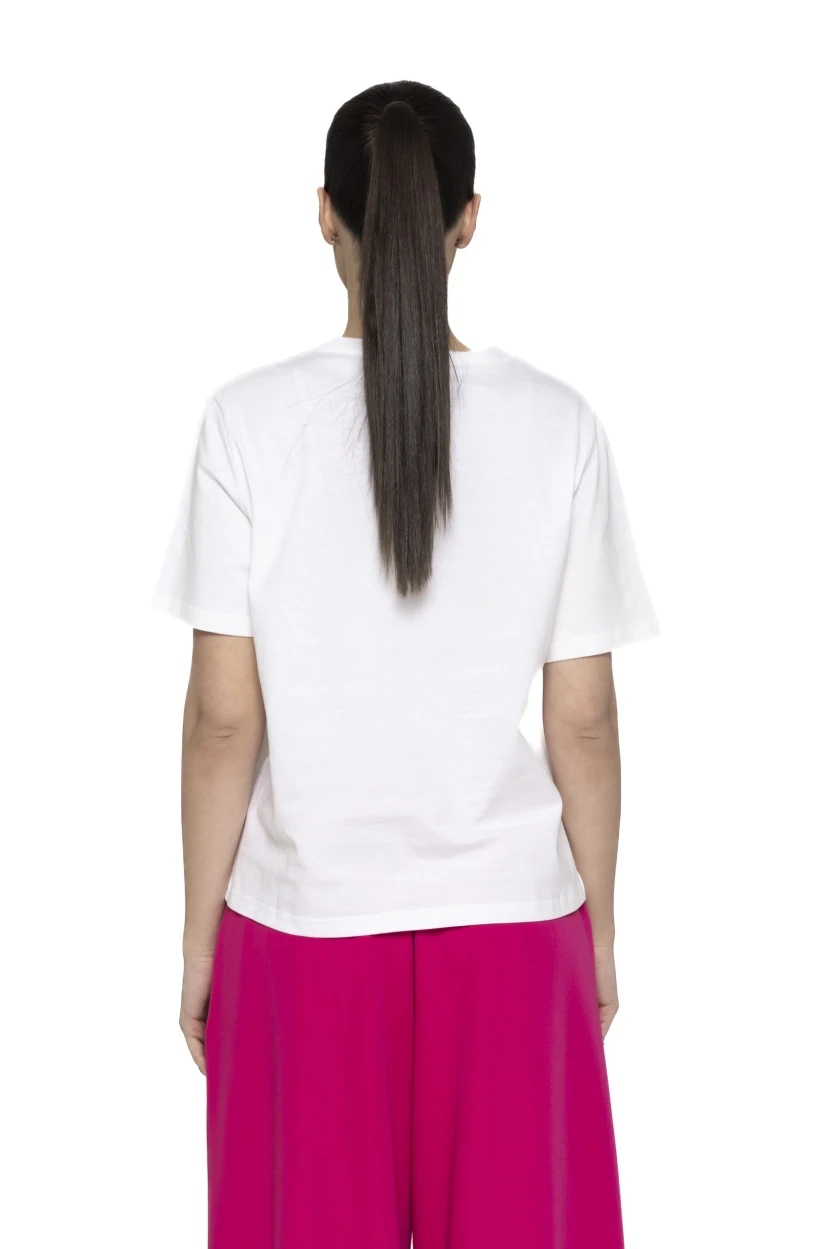 Versatilitatea este unul dintre principalele avantaje ale acestui tricou. Poate fi purtat cu jeanși pentru un look casual și relaxat, ideal pentru plimbări sau întâlniri cu prietenii. În același timp, poate fi integrat într-o ținută mai elegantă, alături de o fustă sau pantaloni cu croială sofisticată, completând perfect un outfit smart-casual.